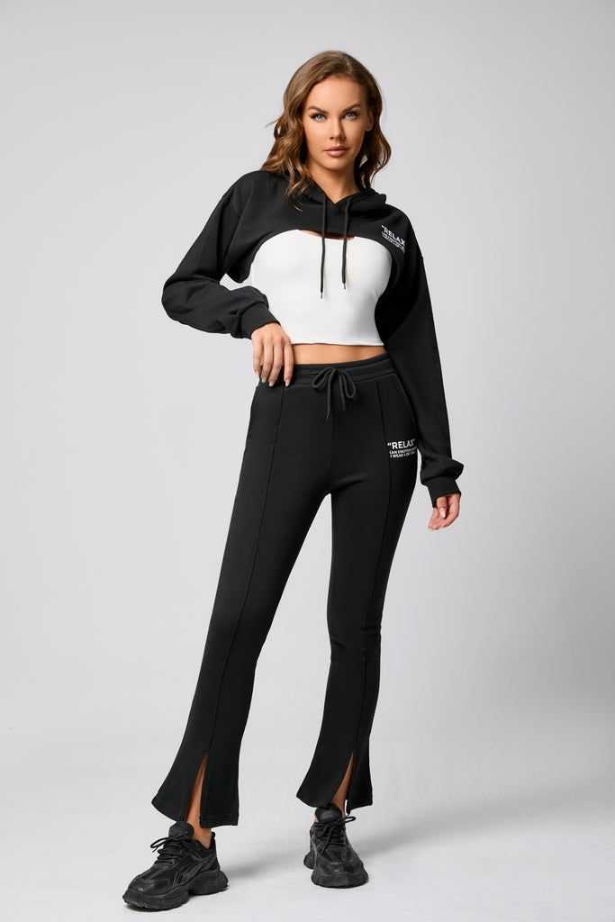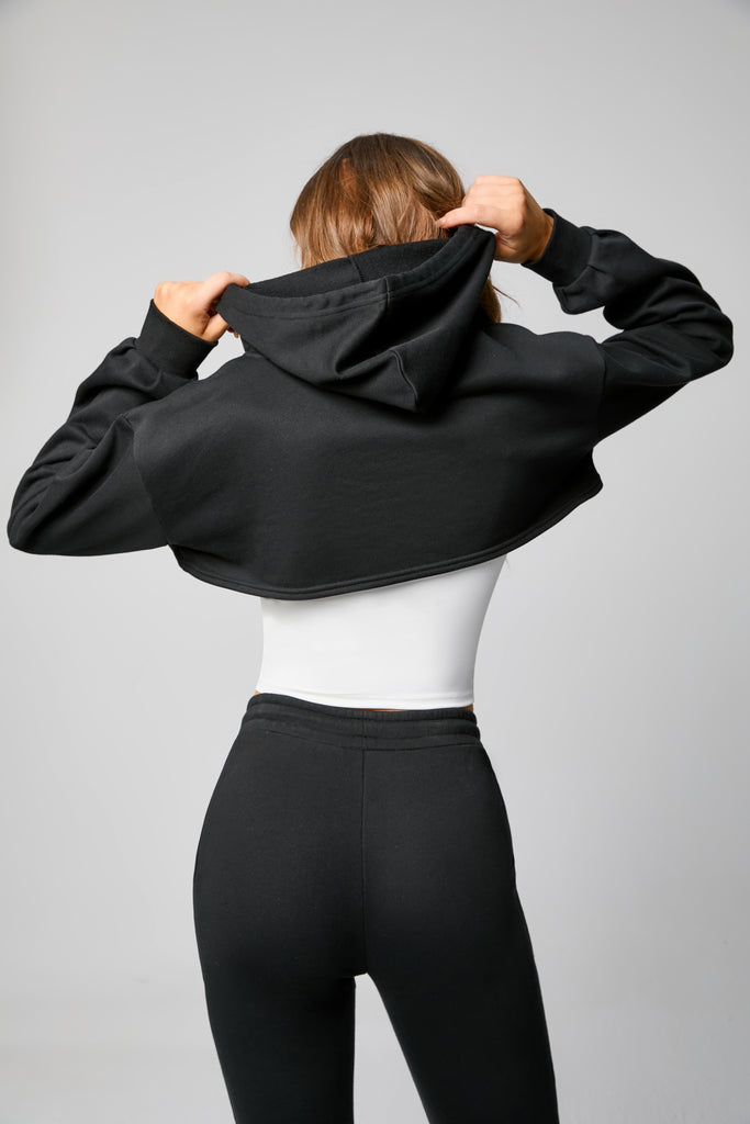 Black Crop Hoodie Sweatshirt for Casual Cool